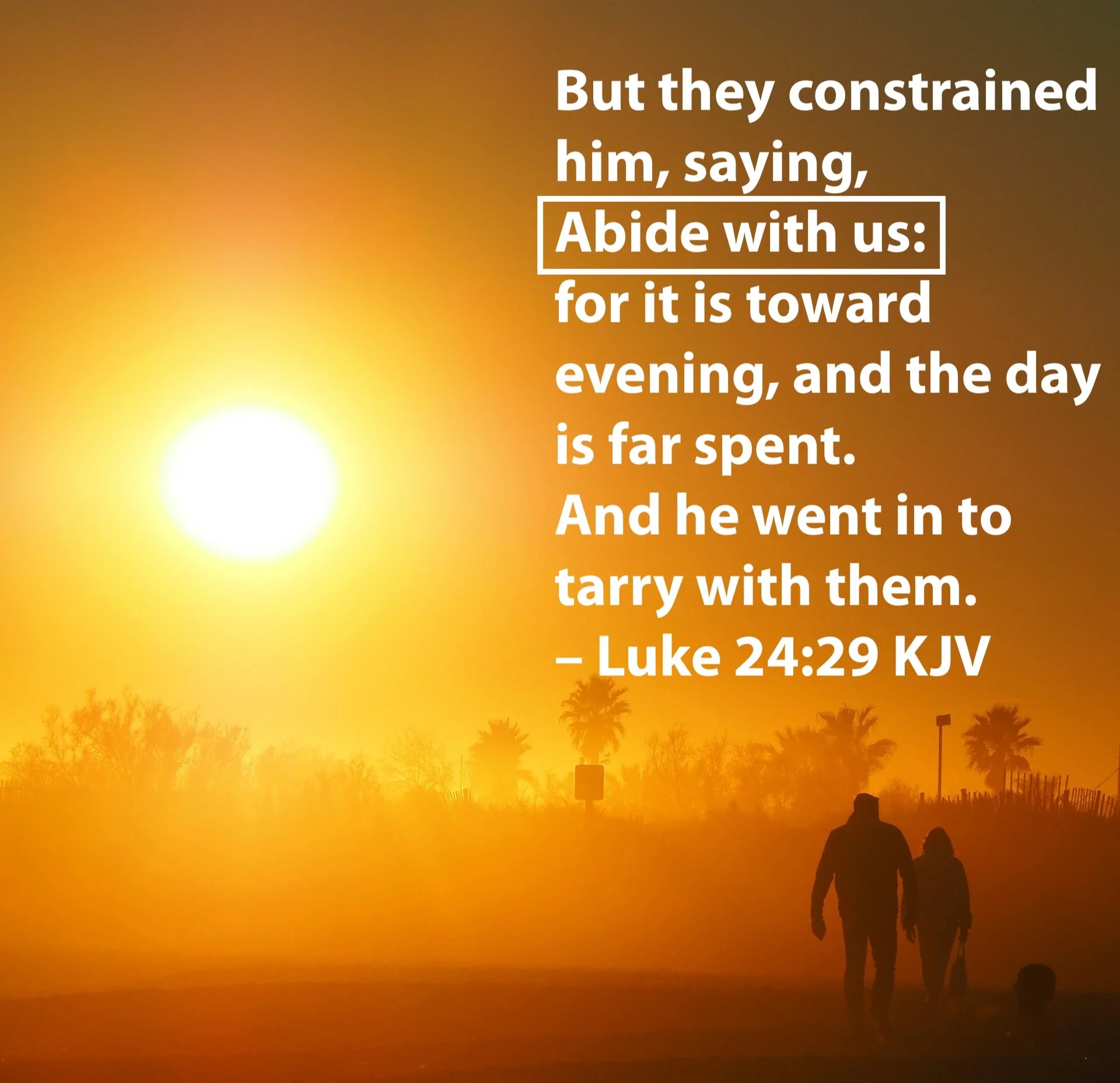 But they constrained [Jesus], saying, “Abide with us: for it is toward evening, and the day is far spent.” And he went in to tarry with them.