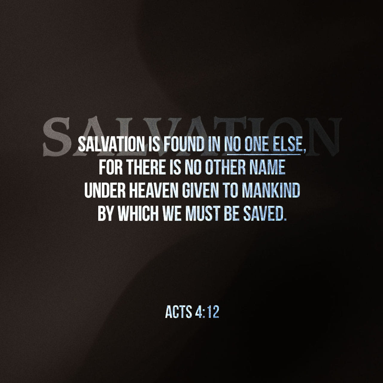 And so Christians believe about the risen Lord Jesus that “Salvation is found in no one else, for there is no other name under heaven given to mankind by which we must be saved” (Acts 4:12).